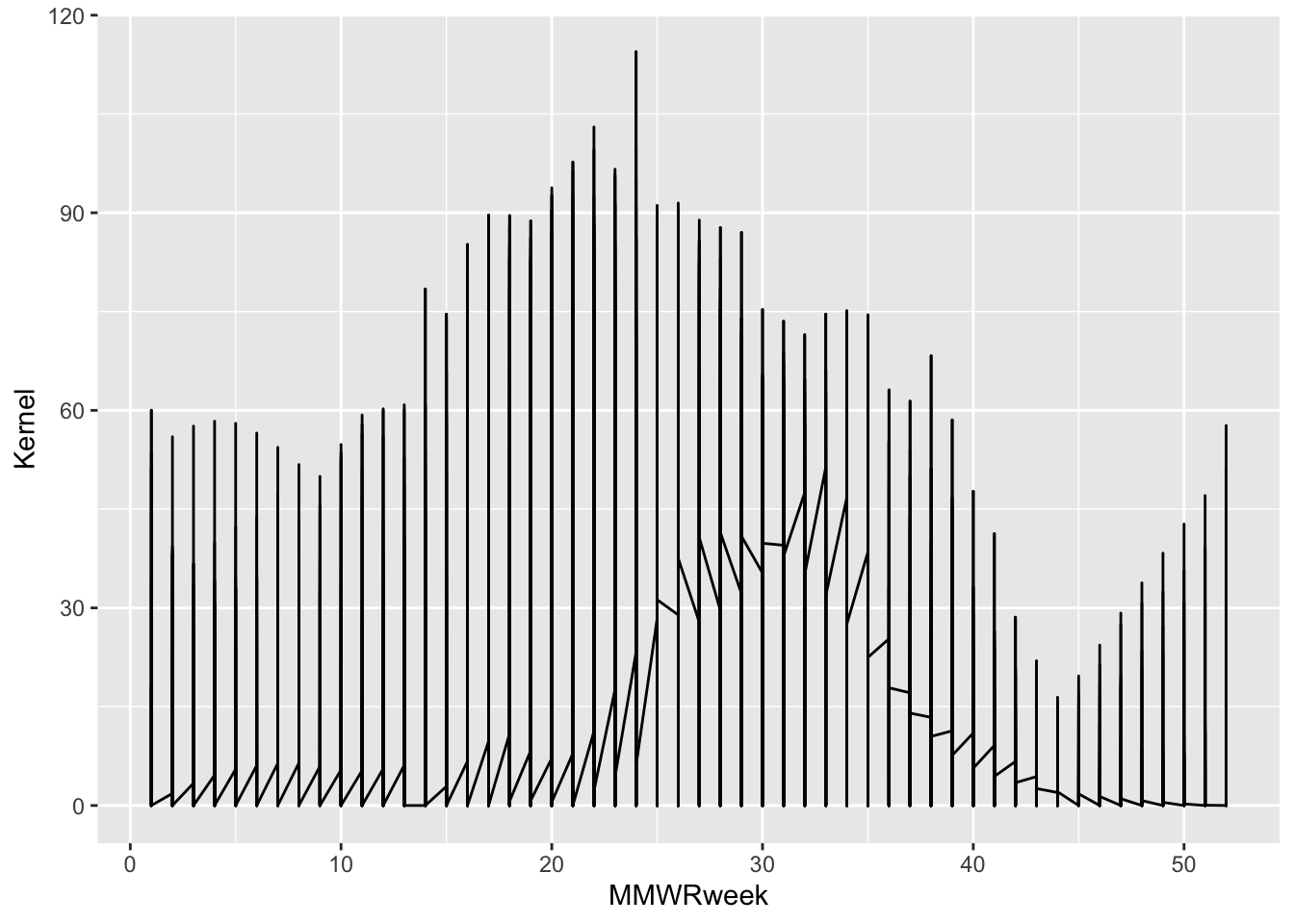 geom_line(aes(x = MMWRweek, y = Kernel))